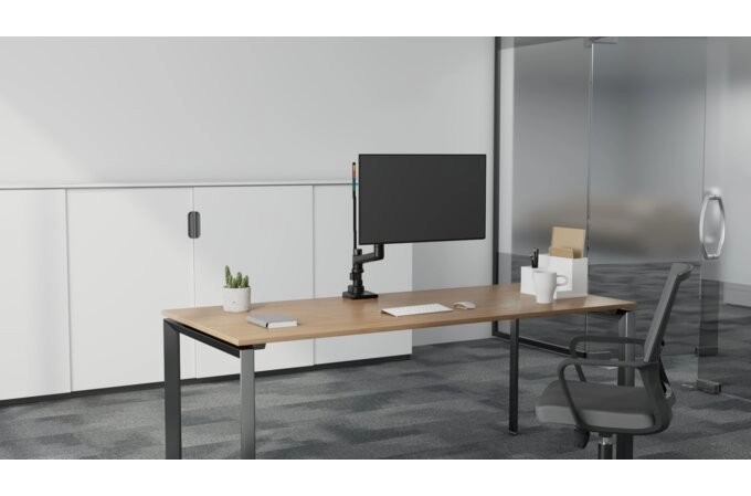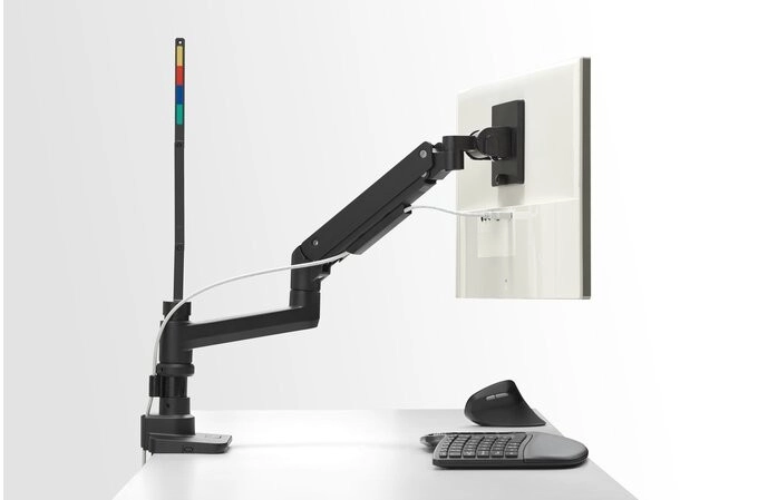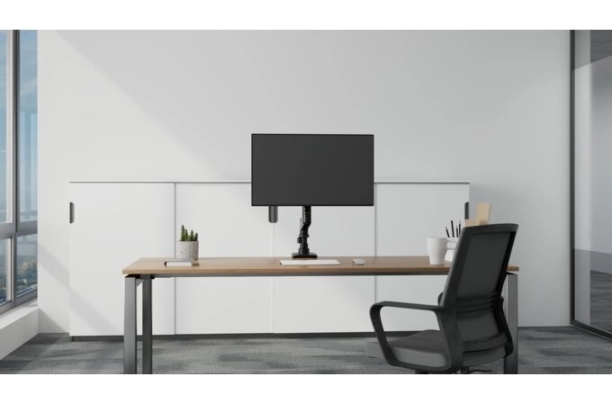 Armen er designet til store og tunge skærme – understøtter én skærm op til 49" og 20 kg med VESA 75/100/200/300. Den forinstallerede C-klemme gør monteringen hurtig, og VESA-hurtigudløserplader gør det nemt at montere eller afmontere skærmen. Den integrerede kabelkanal holder skrivebordet rent og overskueligt.