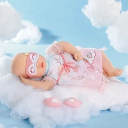 Med denne natkjole føler Baby Annabell sig som på en sky. Takket være det tylbelagte skørt og de festlige fåremotiver vil din dukke nyde at falde i søvn hver nat. Natritualet ledsages også af en sød sovemaske og små futter, som let kan tages af.