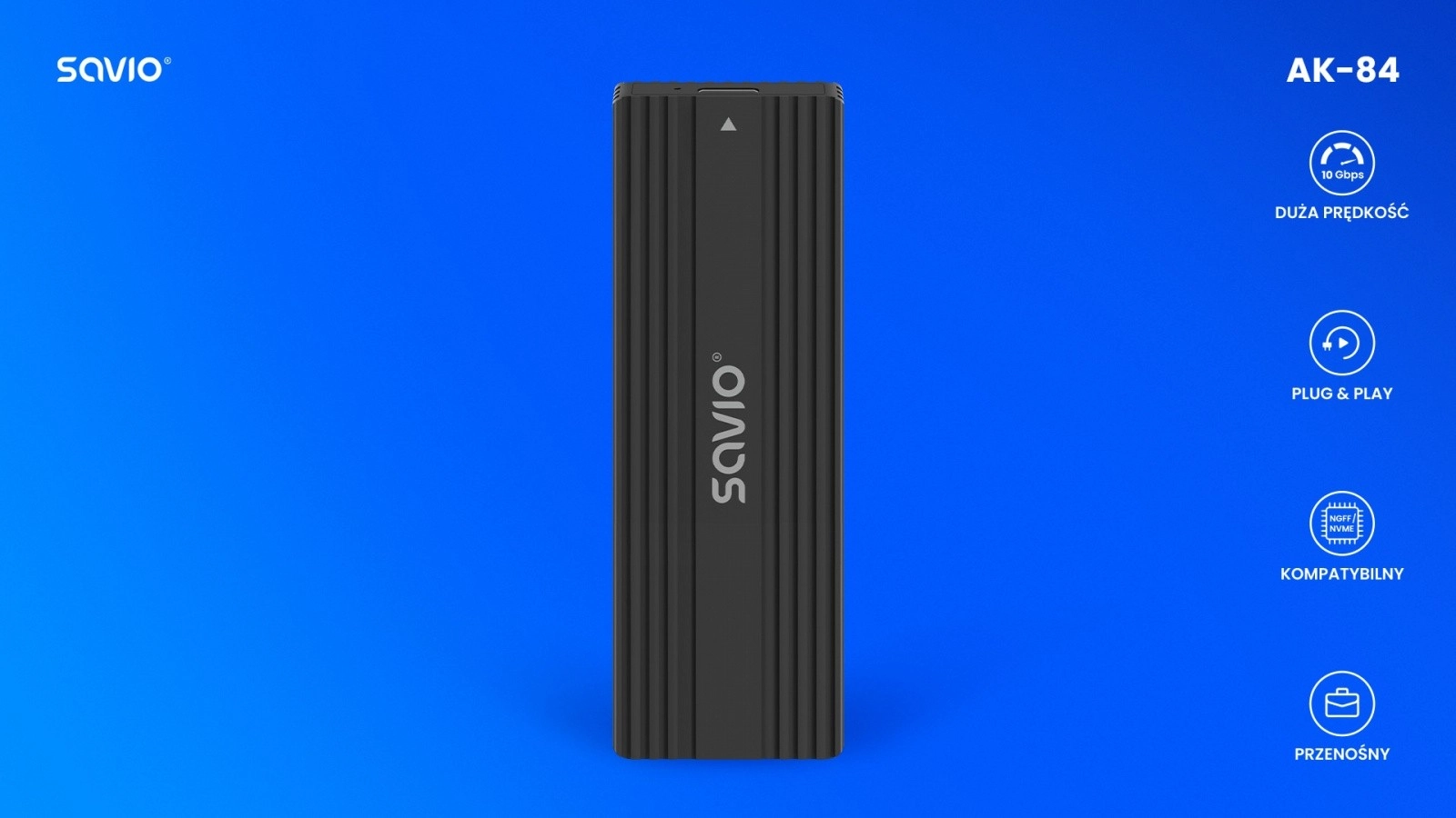 Det elegante og robuste SAVIO AK‑184 etui forvandler straks din M.2 SSD (NVMe og SATA/NGFF) til en kraftig, bærbar lagerenhed. Takket være USB 3.1 Gen 2 opnår du hastigheder op til 10 Gb/s, så store filer, sikkerhedskopier og spil flyttes på ingen tid. De kompakte mål og en vægt på blot 44 g gør den til en ideel rejsemakker.