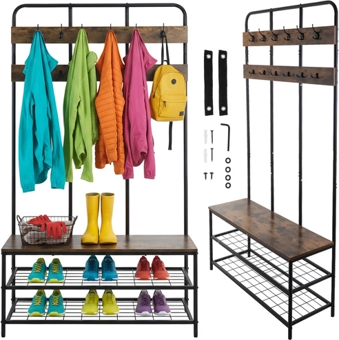 Den praktiske løsning sparer plads og holder alt inden for rækkevidde – fra frakker og tasker til sko. Skridsikre fødder beskytter gulvet mod ridser og sikrer stabilitet selv ved højere belastning.