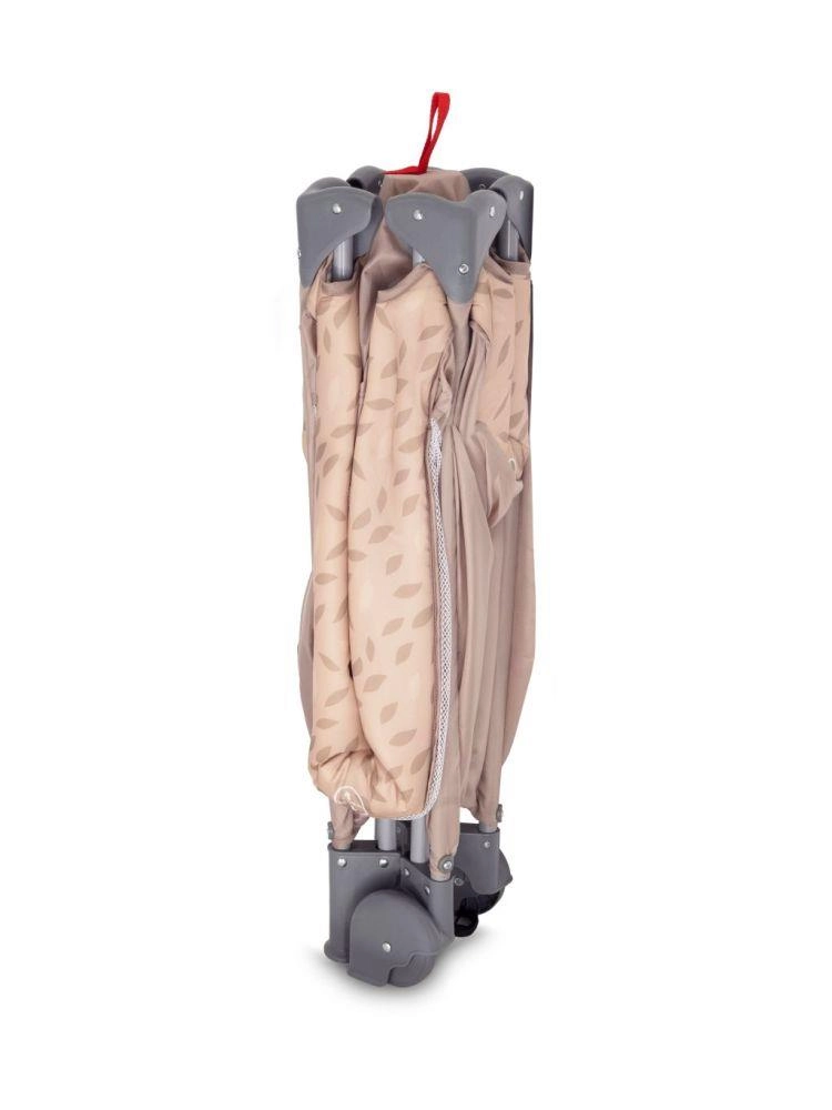 Det intuitive system gør det muligt at folde og slå sengen ud på få øjeblikke. Sammenklappet har den kompakte mål 21 × 23 × 80 cm og passer i bagagerummet på selv en mindre bil. En praktisk bæretaske til nem transport medfølger.