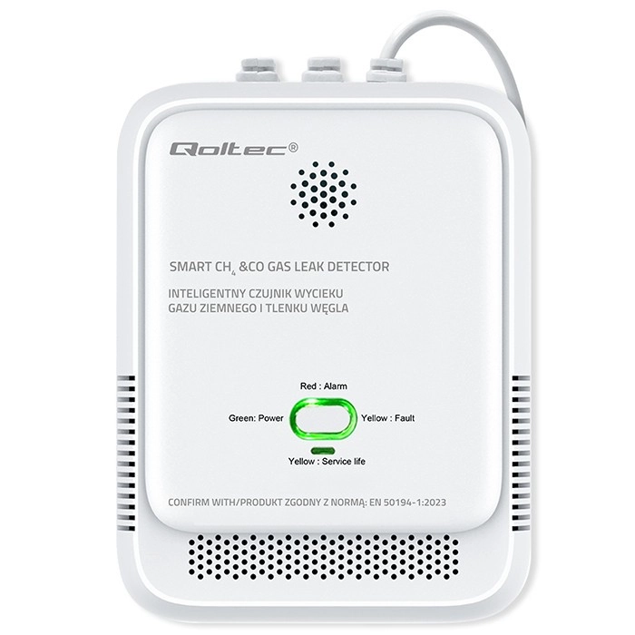 Pålidelig gasdetektor og CO-sensor til hjemmebeskyttelse. Hurtig respons, højlydt 85 dB alarm og advarselsrød LED varsler dig i tide om farlig lækage af kulilte (CO), metan (CH4) og LPG (propan-butan). Halvleder-sensor, autodiagnostik og TEST-knap for nem funktionskontrol.