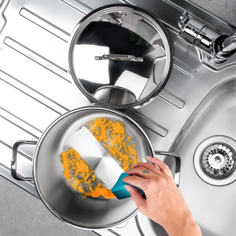 Den flerlags akutermiske bund akkumulerer varme fremragende og fordeler den jævnt over hele fladen. Du laver mad hurtigere, mere økonomisk og med bedre kontrol.