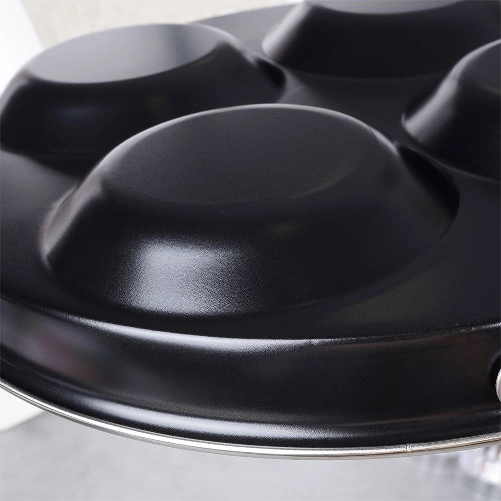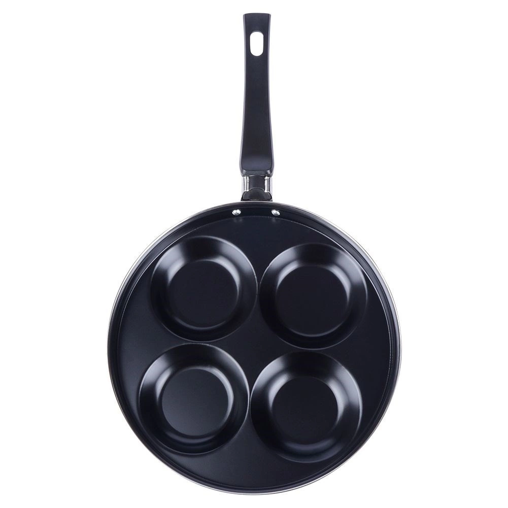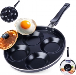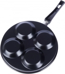 Denne 25 cm pande med 4 adskilte fordybninger (8 cm) gør det nemt at lave morgenmad og hurtige aftensmåltider. Hver portion bliver lige høj og ensartet tilberedt, uanset om du laver æg, små pandekager eller mini-pandekager. Den holdbare non-stick belægning minimerer fastbrænding og sikrer let frigivelse og rengøring.