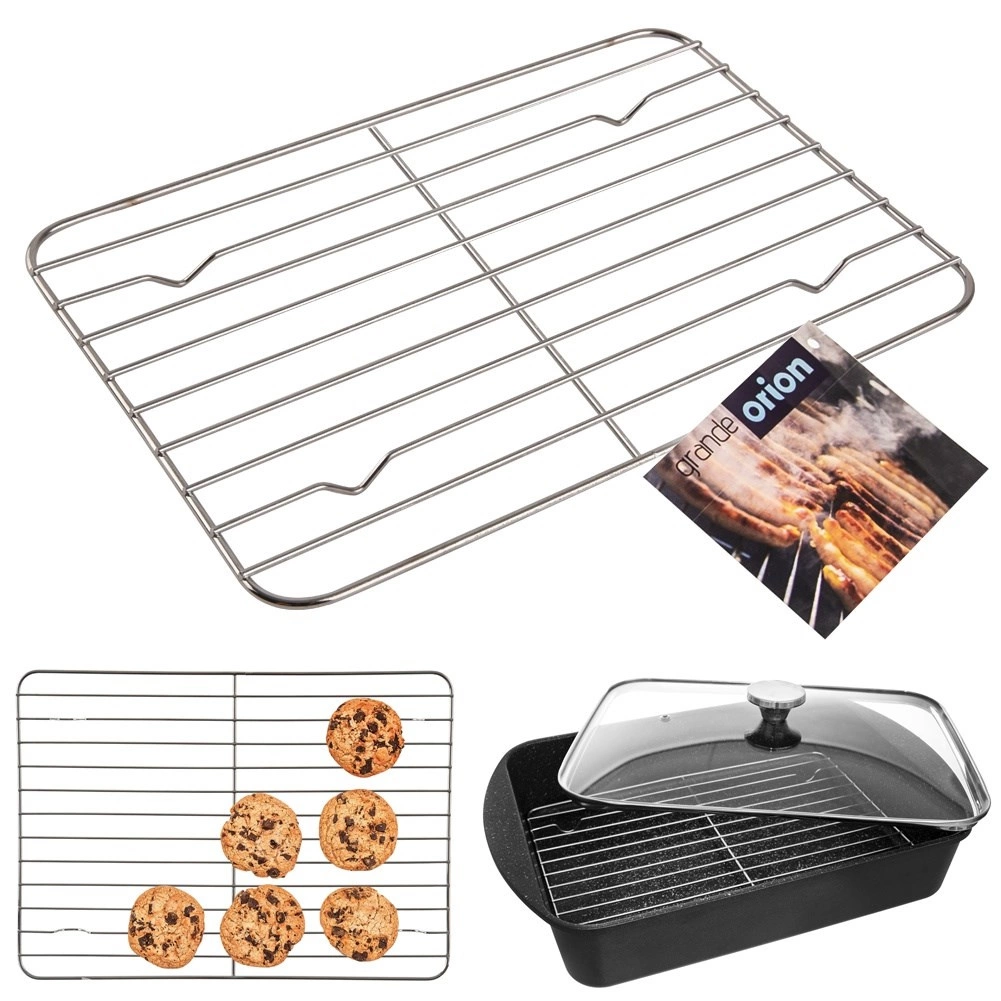Risten kan også bruges i konditori – som afkølingsrist til småkager, kagebunde eller desserter pyntet med glasur. Den solide konstruktion af forkromet tråd er holdbar, let at rengøre og kan holde i årevis ved korrekt pleje. Ideel til husholdninger, bagerier og restauranter.
