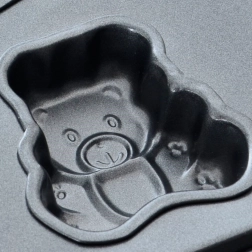 Kulstofstål sikrer stabilitet og jævn varmefordeling. Bjørnene holder formen og bliver smukt gennem bagt.
