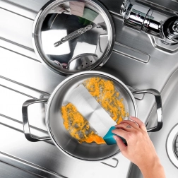 Tykkere vægge, robuste håndtag og rustfrit stål 18/10 af høj kvalitet sikrer stabilitet, korrosionsbestandighed og nem rengøring i opvaskemaskinen.