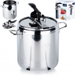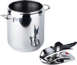 Massiv konstruktion i kvalitets rustfrit stål, 3-lags sandwichbund for jævn varmefordeling og mulighed for trykregulering giver fremragende resultater på gas-, elektriske, glaskeramiske, halogen- og induktionskomfurer. Gryden er let at betjene, og takket være to sikkerhedsventiler og en pålidelig lukkemekanisme kan du lave mad med ro i sindet. Kroppelementet er egnet til opvaskemaskine (låget anbefales vasket i hånden).