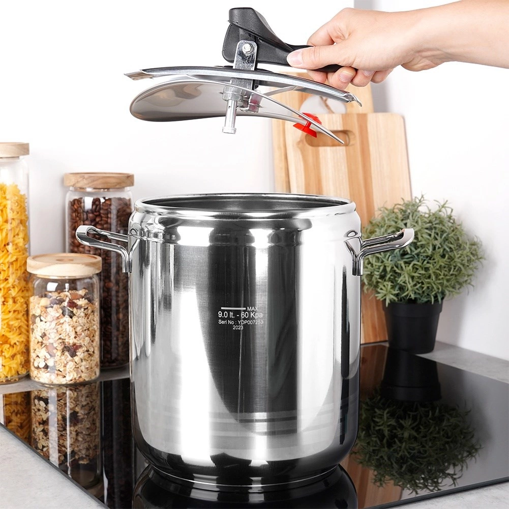 Trykkogeren Profi 9 l er en pålidelig hjælper til madlavning i hverdagen. Den koger under højt tryk, hvilket markant forkorter tilberedningstiden og sparer både energi og næringsstoffer i maden. Den totale volumen er 9 l, den anbefalede arbejdsmængde til trykkogning er ca. 2/3, hvilket sikrer sikker og effektiv drift.