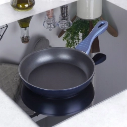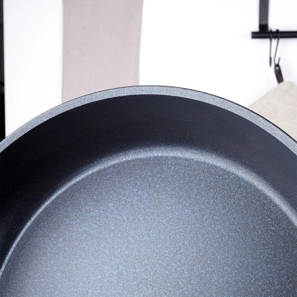 Massivt aluminiumstøbegods med flerlaget bund fordeler effektivt varmen over hele fladen og hjælper med at spare energi ved daglig madlavning.