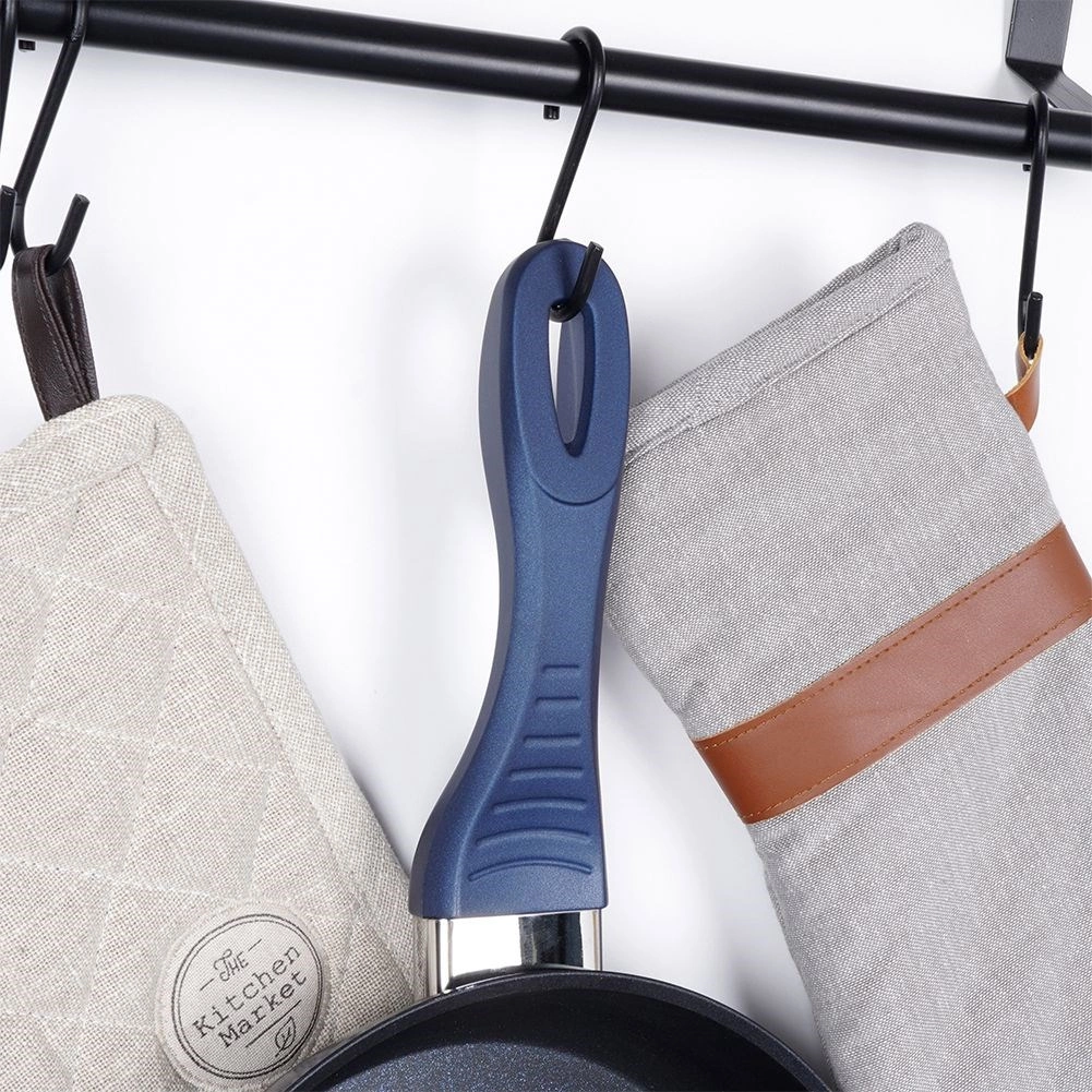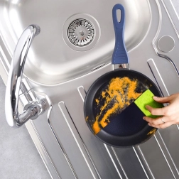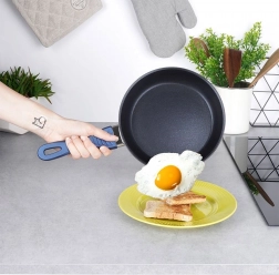 Det blå design på korpus og ergonomisk håndtag med silikoneoverflade giver køkkenet stil og sikrer et fast, komfortabelt greb. Pandens materiale er modstandsdygtigt over for kemisk korrosion forårsaget af rengøringsmidler og kan vaskes i opvaskemaskine. Originalt produkt fra det tjekkiske mærke ORION, fremstillet i overensstemmelse med europæiske standarder.