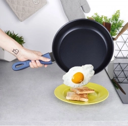 Det ergonomiske håndtag med blød silikoneoverflade bliver ikke varmt, og panden kan nemt vaskes i opvaskemaskinen.