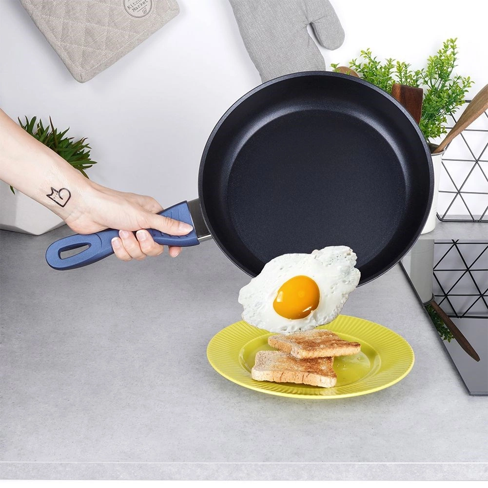 Den holdbare konstruktion i støbt aluminium er stabil, massiv og klar til intensiv daglig madlavning. Panden er fri for PFOA og PTFE, klarer fedtfattig stegning, sautering og tilberedning af pandekager. Det ergonomiske håndtag med blød silikone ligger godt i hånden og bliver ikke varmt.
