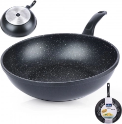 Det ergonomiske håndtag forbliver køligt at røre ved og giver sikker håndtering. Takket være universel kompatibilitet med alle typer komfurer, inklusive induktion og muligheden for opvask i maskine er wokken en praktisk hjælper til hverdagsmadlavning. Det tidløse look med granit/“sten”-struktur fuldender stilen i dit køkken.