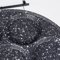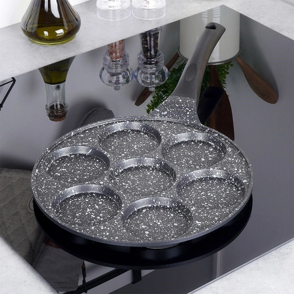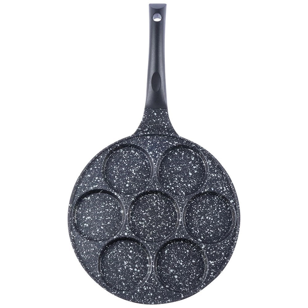 Bag perfekt runde pandekager, mini-pandekager eller spejlæg på én gang. Syv separate forme sikrer samme størrelse og jævn tilberedning, mens den granitbaserede nonstick-belægning Pfluon forhindrer fastbrænding og gør servering og rengøring nemmere.