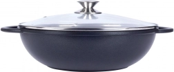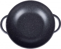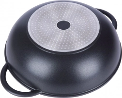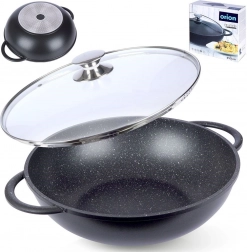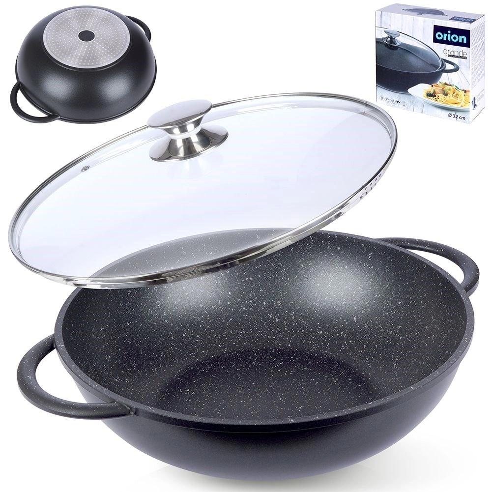 Oplev bekvem madlavning med en wok af robust aluminium med indvendig granitbelægning PFLUON, som er nonstick, modstandsdygtig over for ridser og høje temperaturer. Takket være den brede bund og høje sider er den ideel til stir-fry, grøntsager, kød og pasta. Det gennemsigtige glaslåg med rustfri kant og dampudslip gør det nemt at holde øje med madlavningen.