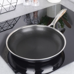 Denne slip-let pande fra den unikke serie COOKCELL HYBRID er fremstillet af kvalitets rustfrit stål og udstyret med en holdbar overflade, som tåler brug af metalredskaber. Den er perfekt til både stegning og sautering – fra saftige steaks og sprøde grøntsager til luftige pandekager.