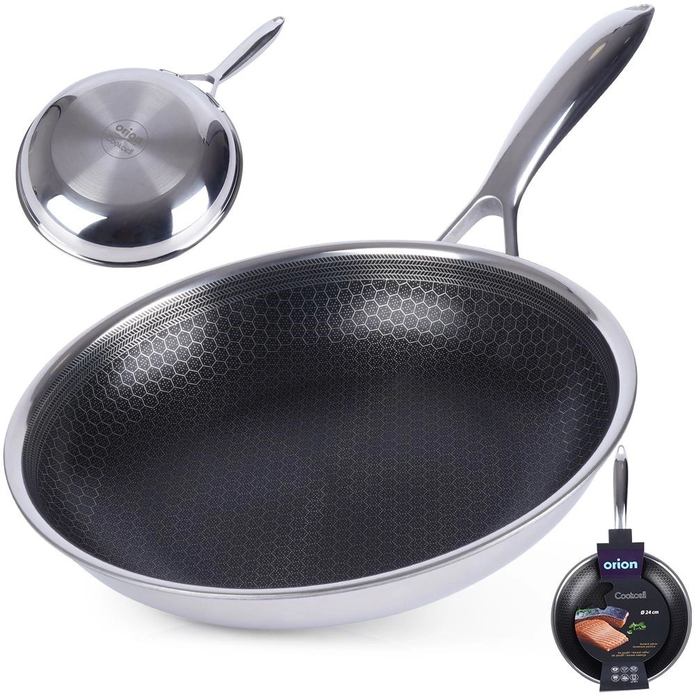 Den præmiekvalitets COOKCELL stålstegepande med en diameter på 24 cm kombinerer rustfrit stål og en hybrid nonstick-belægning med hexagonal struktur. Den tilbyder hurtig og jævn varmefordeling, er ridsebestandig, egner sig til alle typer komfurer inklusive induktion og kan også bruges i ovn op til 260 °C. Takket være nem rengøring og mulighed for opvaskemaskine er den ideel til daglig madlavning.