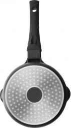 Praktisk kasserolle GRANDE med en diameter på 16 cm og volumen på 1,3 l til daglig madlavning. Takket være den nonstick granitbelægning uden PFOA og PTFE laver du mad sundt med minimalt fedt, den fordeler varmen jævnt og sparer energi. Det ergonomiske håndtag forbliver koldt, og de dobbelte hældetude gør præcis og ren hældning nem. Velegnet til gas, el, glaskeramik, halogen og induktion samt opvaskemaskine.