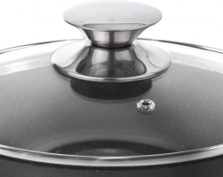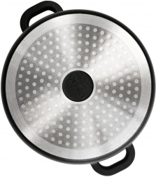 Det gennemsigtige låg med metalknop og ventil gør det muligt at kontrollere kogningen og slippe overskydende damp ud.