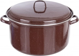 Dette alsidige låg er lavet af højkvalitets emaljeret stål i elegant brun farve med et fint, prikket mønster. Det passer til køkkentøj med en diameter på 32 cm, og takket være det solide håndtag er det nemt at håndtere. Emaljen er hygiejnisk, sundhedsmæssigt sikker og velegnet til allergikere.