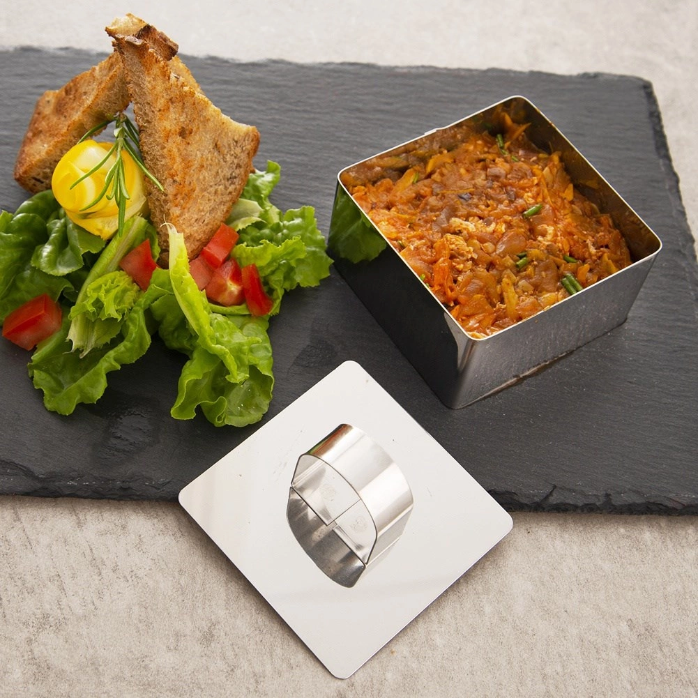 Formen er robust, fødevaresikker og nem at vedligeholde. Højden på 4 cm og målene 8 × 8 cm er ideelle til portionering og æstetisk præsentation af mad i både hjemmet og professionelt brug.