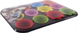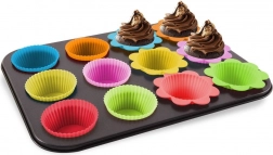 Rektangulær muffinform med 12 silikoneforme er ideel til daglig bagning. Metaldele har en non-stick belægning for nem udløsning og let rengøring, mens silikoneformene i forskellige farver er lette, fleksible og giver en smuk bølget kant på hvert stykke. Velegnet til søde muffins, mini-kager og salte snacks.
