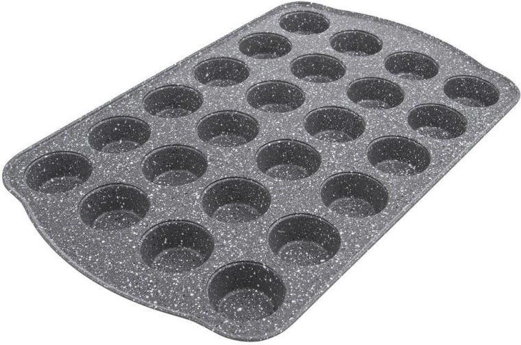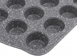 Denne rektangulære ORION Grande-form med granitlook er ideel til daglig bagning af mini-muffins, cupcakes og salte hapser. Non-stick belægningen gør det muligt at bage med minimalt fedt og sikrer nem udtagning uden fastbrænding. Takket være 24 fordybninger kan du tilberede en hel portion på én gang – hurtigt, økonomisk og med ensartede resultater.