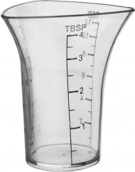 Dette praktiske bægerformede målebæger på 60 ml i transparent plast er ideelt til daglig madlavning, bagning og blanding af drikke. Med kombineret skala for ml, teskefulde og spiseskefulde måler du nemt små mængder med maksimal præcision.