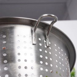 Takket være det robuste rustfrie stål er sien hygiejnisk, nem at vedligeholde og fødevaresikker. Perfekt til daglig madlavning – fra skylning af grøntsager til afvanding af ris eller pasta.