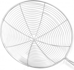 Den universelle skumøse i rustfrit stål på 35 cm er uundværlig til supper, saucer og friturestegte retter. Den robuste konstruktion i rustfrit stål sikrer lang levetid, nem vedligeholdelse og hygiejnisk brug. Det åbne trådhovede leder hurtigt væske og fedt væk, så maden forbliver sprød og ikke bliver gennemblødt.