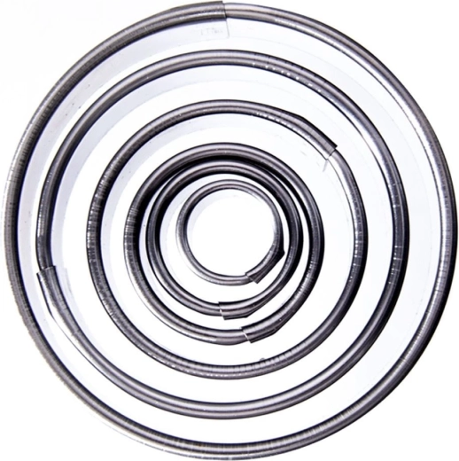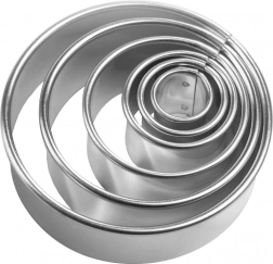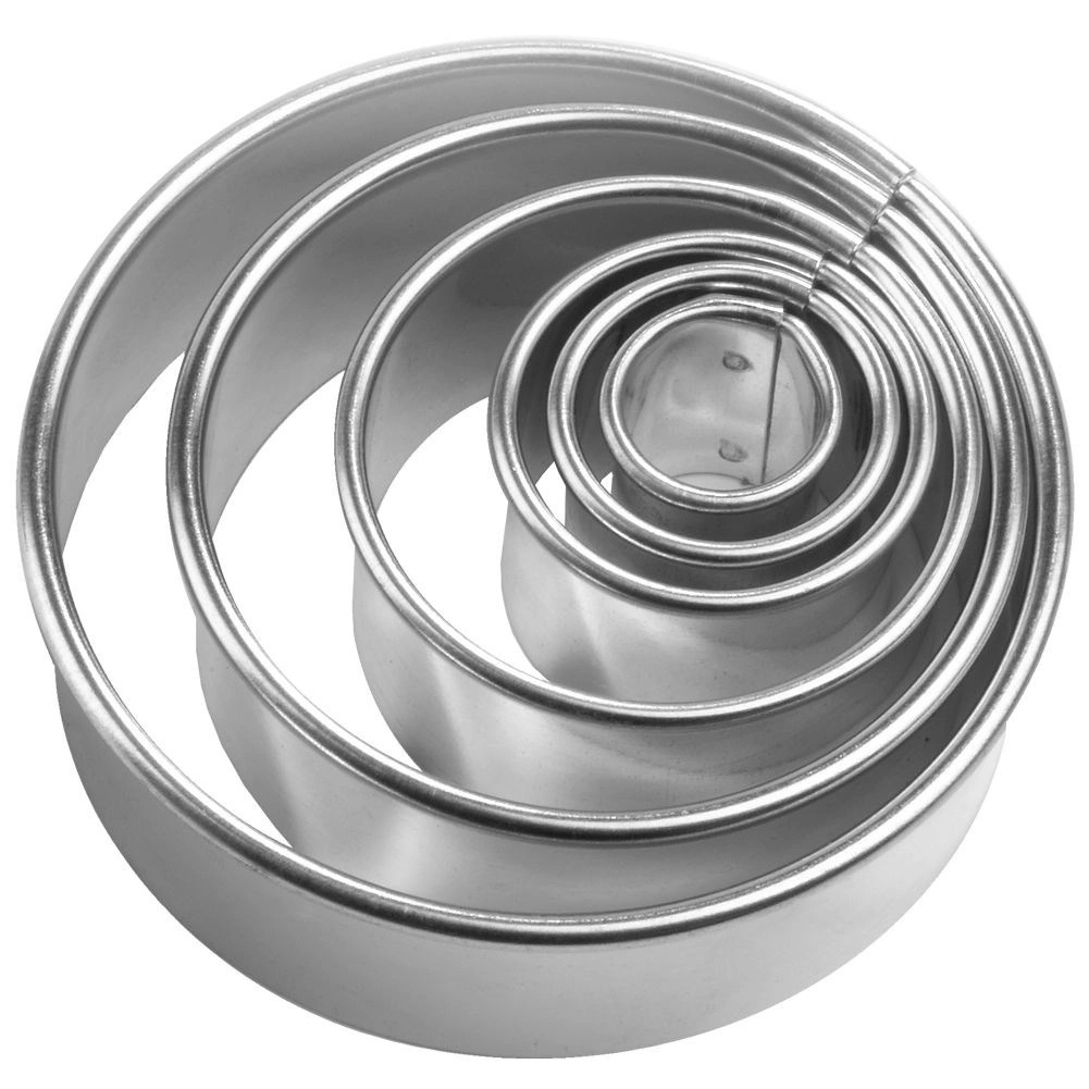 Opdag et alsidigt sæt runde udstiksforme, som gør det let at lave klassiske linzerkager, honningkager og moderne småkager med glasvindue. Med fem størrelser kan du nemt skabe effektfulde flerskiktsformer, mini-sandwiches eller dekorationer af fondant. Det kvalitetsrige rustfrie stål sikrer lang levetid og præcis udskæring.
