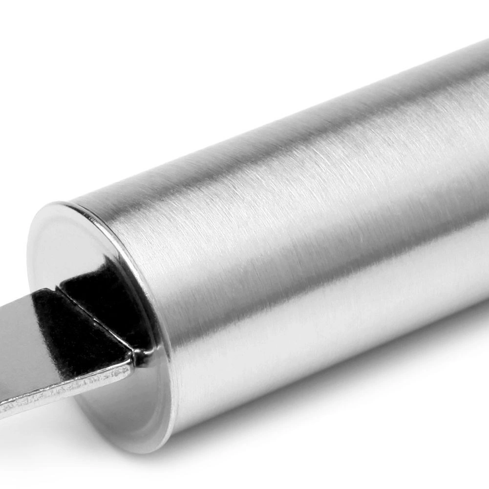 Det ergonomiske cylindriske håndtag giver et sikkert greb, og øjet for enden gør det nemt at hænge på køkkenrelingen.