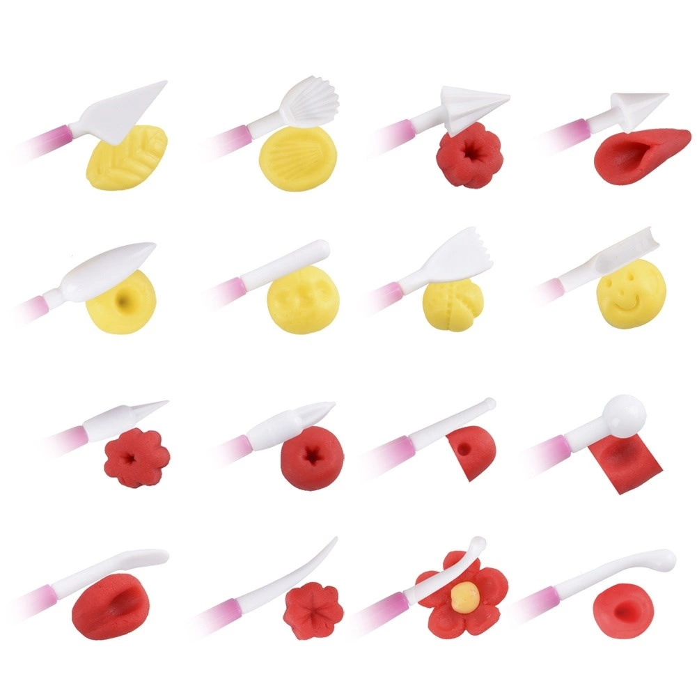 Takket være 16 unikke spidser klarer du fine detaljer på blomster, kronblade, figurer og blondekanter. Værktøjerne er lavet af slidstærk plast, ligger godt i hånden og er lette at rengøre. Farverne (rød, lyserød, gul, grøn) leveres tilfældigt.
