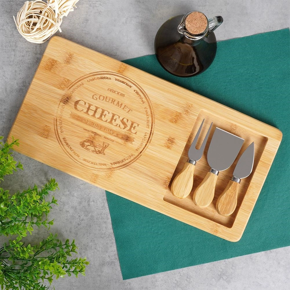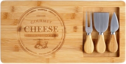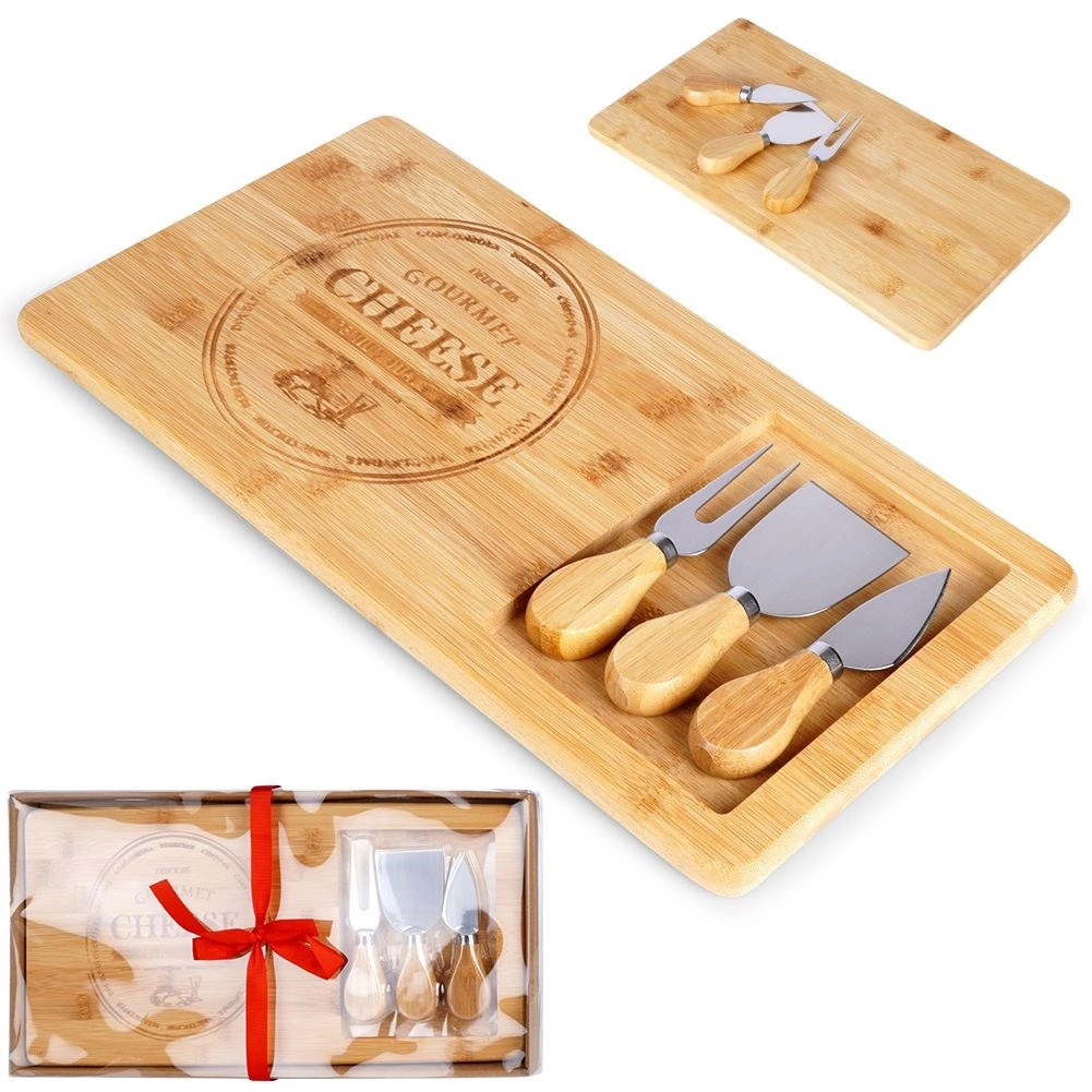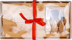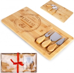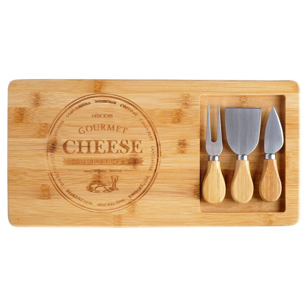 Dette elegante bambus-ostebræt med tre specialiserede værktøjer forvandler enhver servering til en gourmetoplevelse. Takket være den integrerede opbevaring har du alt ved hånden, og serveringen bliver altid overskuelig og stilfuld. Naturbambus er holdbar, skånsom mod knive og har en glat overflade, der er nem at rengøre.