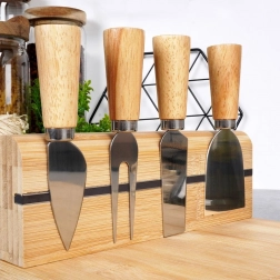 Dette stilfulde bambus-ostebræt gør enhver sammenkomst til en gourmetoplevelse. De fire værktøjer i rustfrit stål med træhåndtag er ryddeligt placeret i en magnetisk holder, så de altid er lige ved hånden uden at optage plads på brættet. Takket være de skridsikre fødder står brættet stabilt på bordet – også når du skærer hårdere oste.