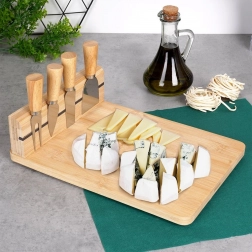 Bambus er fugtbestandigt, deformeres ikke, absorberer ikke lugte og tørrer hurtigt. Brættet er derfor ikke kun attraktivt, men også praktisk at vedligeholde og velegnet til langvarig brug. Perfekt til familiefester, sammenkomster og daglig servering af delikatesser. Det er også en fremragende gave til ostelskere.