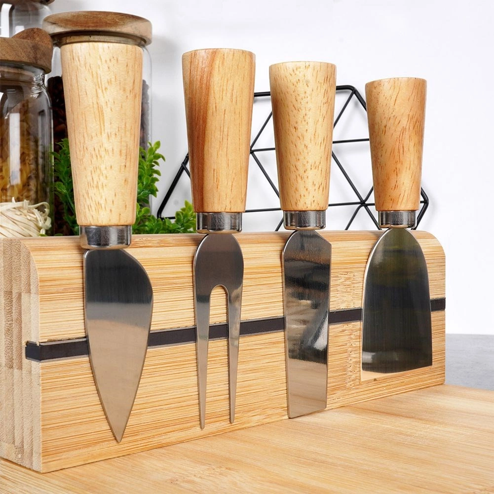 - 4-delt sæt af værktøjer i rustfrit stål til skæring, portionering og servering af forskellige ostetyper