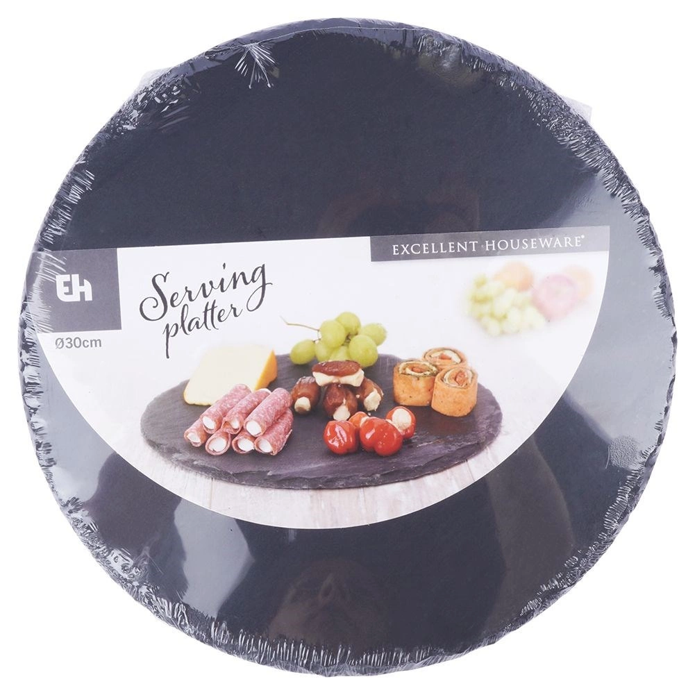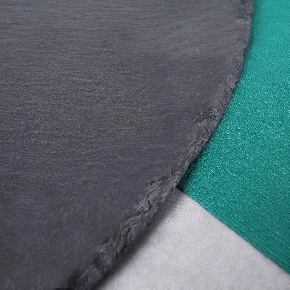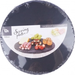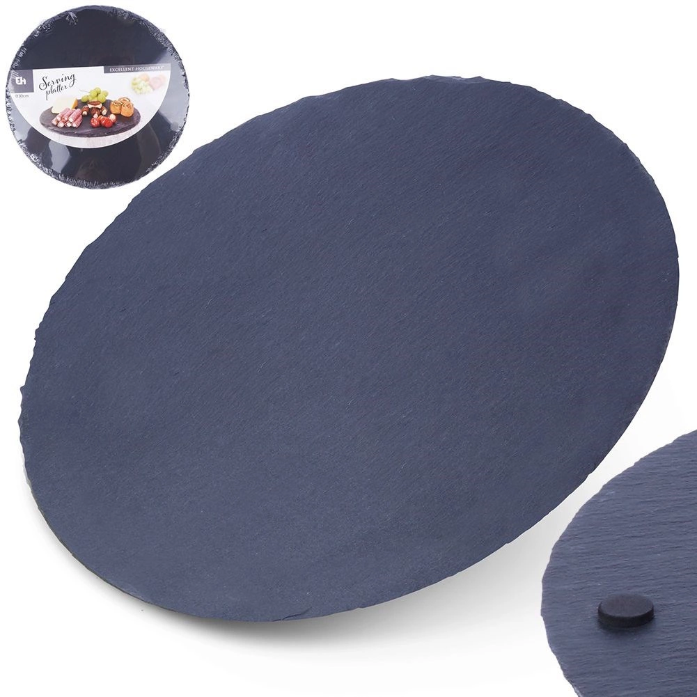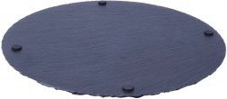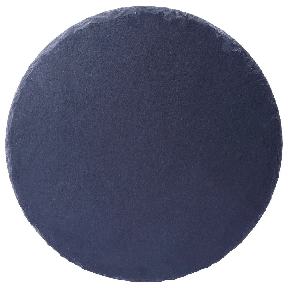 Elegant rund serveringsbakke af naturlig skifer med en diameter på 30 cm til stilfuld servering. Byder på rustikt look, robust stenoverflade og alsidig anvendelse til oste, forretter, desserter og varme retter. Takket være skridsikre fødder står den stabilt og sikkert på ethvert bord.