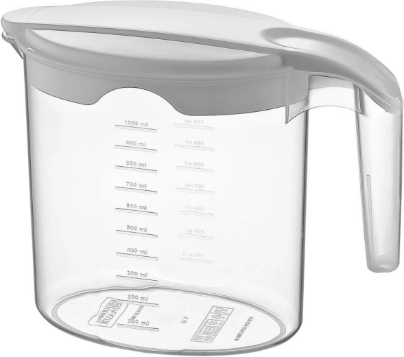 Den lette og holdbare plastkande 1 l er designet til bekvem brug i køkkenet og udendørs. Den praktiske hældetud sikrer ren hældning uden dryp, mens det lukbare låg beskytter drikke mod støv og insekter. Takket være den indbyggede måleskala er den også velegnet til præcis opmåling af væsker.