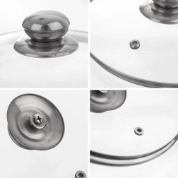 Universelt glaslåg med en diameter på 16 cm med rustfri stålkant og komfortabelt greb. Varmebestandigt glas gør det muligt at overvåge madlavningen uden at løfte låget, og en dampventil leder overskydende damp ud, så det ikke koger over. Takket være den robuste rustfri stålringskant sidder det godt og tæt på gryder, pander og kasseroller.
