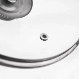 Takket være det integrerede udluftningshul mindskes risikoen for overkogning, og der dannes mindre kondens. Den let hvælvede profil forbedrer cirkulationen af varm luft, så retten opvarmes mere jævnt. Den tætte, skridsikre kant hjælper låget med at sidde sikkert på gryden og minimerer dampudslip.