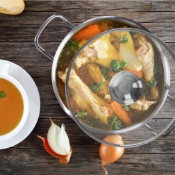 Den solide rustfri stålkant og knop sikrer holdbarhed og lang levetid. Den integrerede dampeventil minimerer kondens og forhindrer overkogning. Takket være den faste kant glider låget ikke og slutter tæt til gryden. Et fremragende valg til daglig madlavning, simring og langtidsstegning.