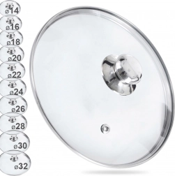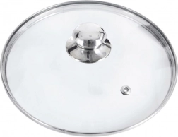 Glaslåget med en diameter på 30 cm er et ideelt supplement til ethvert køkken. Det gennemsigtige, varmeresistente glas muliggør kontrol af madlavningen uden unødigt varmetab og damp, mens dampventilen leder overskydende fugt væk. Den rustfri stålring og knoppen sikrer holdbarhed og lang levetid.