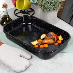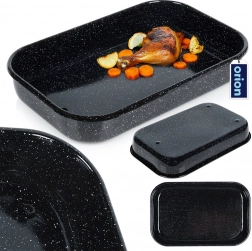 Robust emaljeret bradepande med mål 42 × 27 × 7 cm (indre 39 × 25 × 7 cm) er et fremragende valg til daglig madlavning og bagning. Den emaljerede overflade er hygiejnisk, holdbar og velegnet til allergikere. De høje kanter sikrer jævn bagning og rigelig plads til safter og tilbehør.