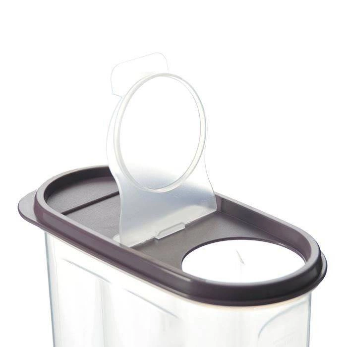 Hold dit spisekammer overskueligt og dine varer friske. Den klare dåse til tørvarer på 1,2 l har et låg med praktisk dosering til nem udhældning uden at skulle åbne hele låget. Den sideplacerede måleskala for hver 250 ml (250–1000 ml) sikrer præcis opmåling af mel, ris, sukker eller morgenmadsprodukter.