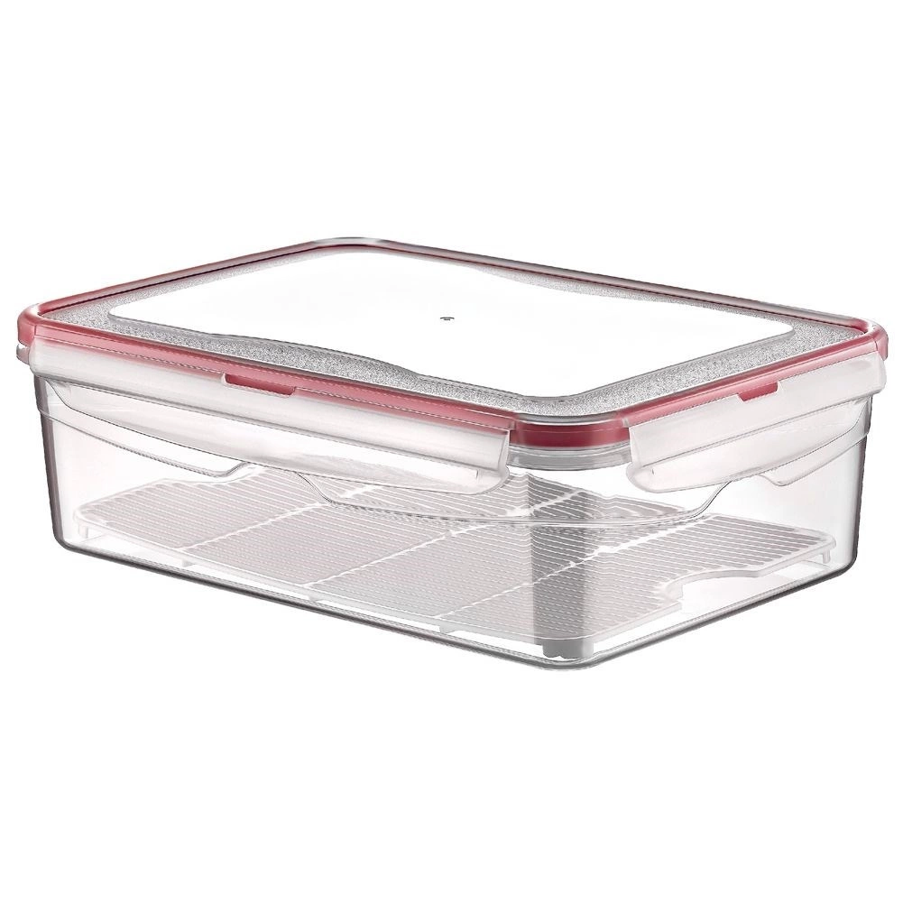 Den aftagelige rist sikrer luftcirkulation og løfter maden fra bunden, så fugt ikke ophobes i boksen, og råvarerne forbliver friske længere. Låget med fire solide clips og silikonepakning sørger for maksimal tæthed og beskyttelse mod fugt og lugte.