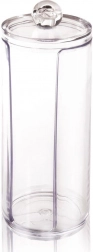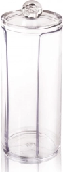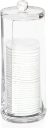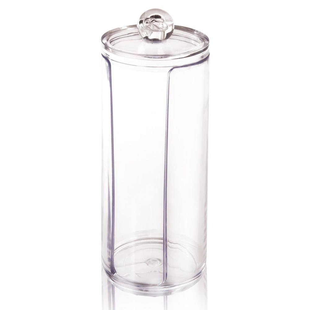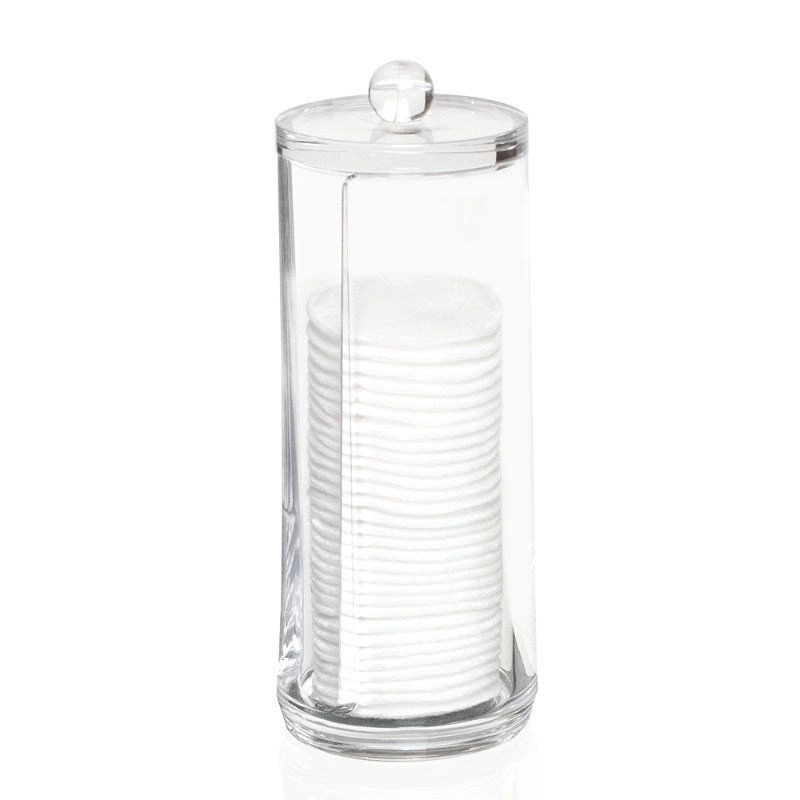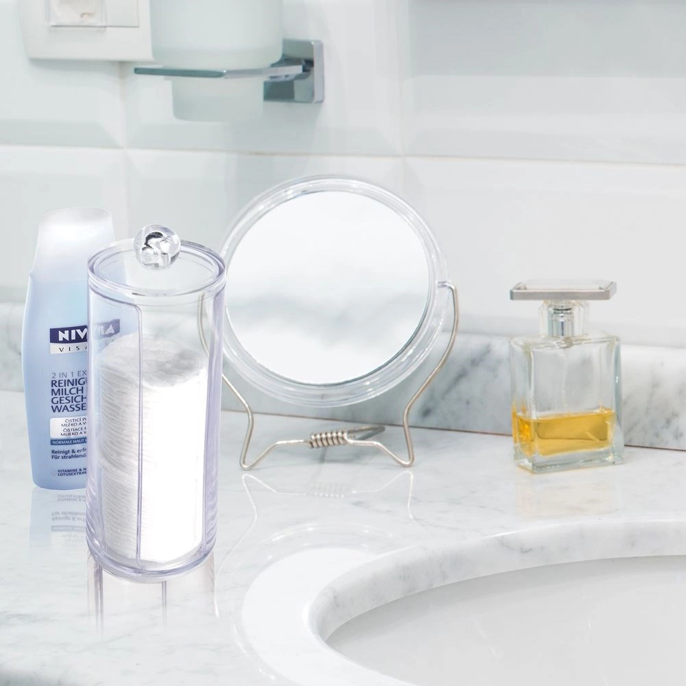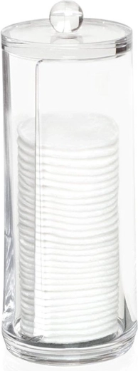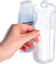 Organisér dine kosmetiske vatrondeller overskueligt og hygiejnisk. Det transparente korpus giver øjeblikkeligt overblik over lageret, og låget beskytter indholdet mod støv og fugt. De kompakte mål 7,5 × 20 cm sparer plads på vasken og toiletbordet.