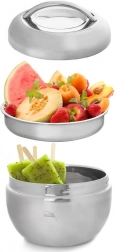 Den ydre termoskål, den aftagelige indre skål og låget med håndtag holder maden varm eller kold i længere tid – ideel til supper, tilbehør og desserter.