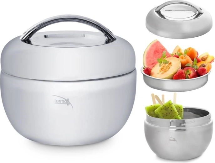 Termoskålen er let, holdbar og designet til daglig brug. Takket være den dobbelte konstruktion hjælper den med at opretholde en stabil temperatur på serverede retter – supper, tilbehør og desserter. Om sommeren kan den også bruges til servering af is uden at smelte for hurtigt. Den glatte overflade i rustfrit stål er hygiejnisk og nem at rengøre.